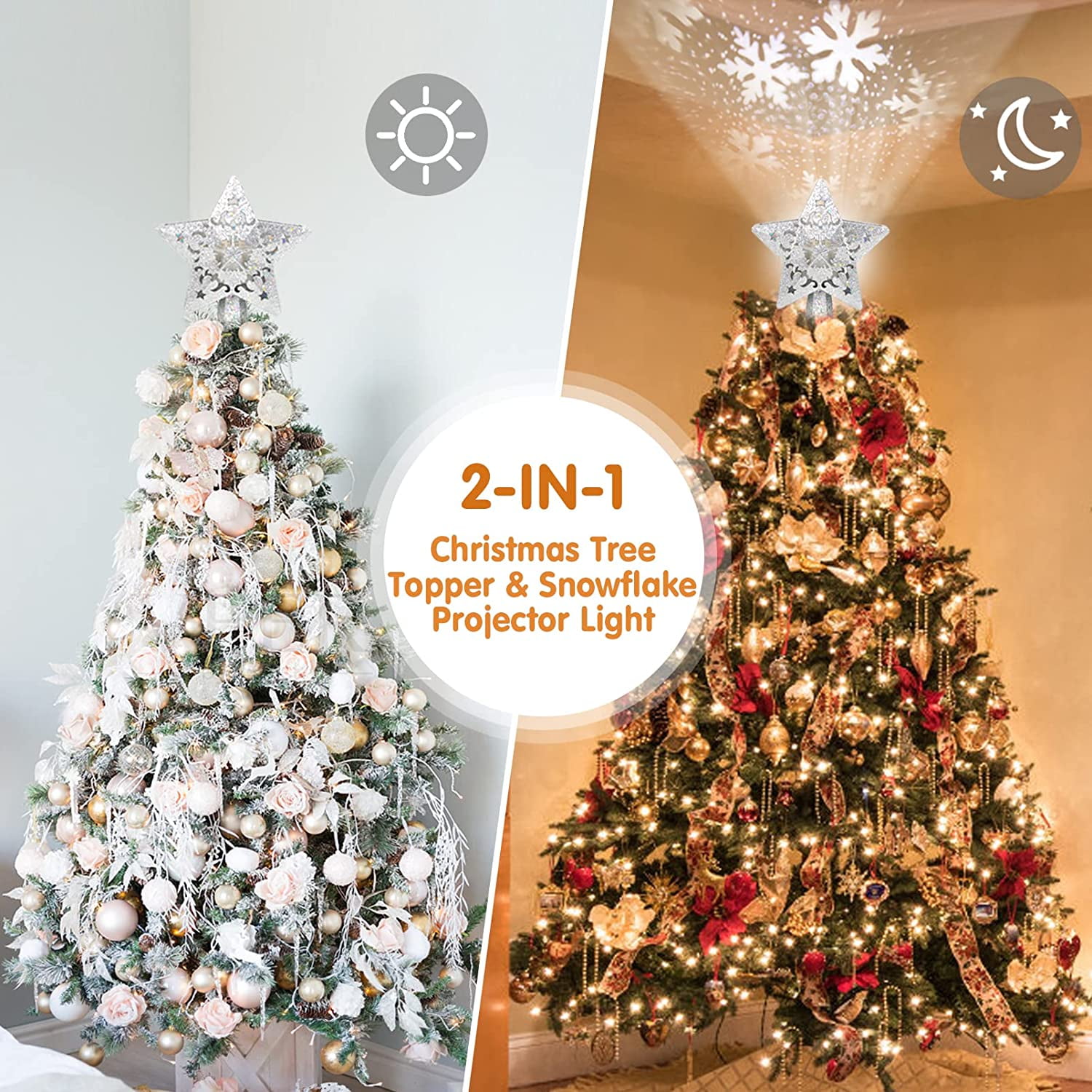 Acmetop Christmas Tree Topper Lighted Star Tree Toppers Led Projector Light With 360 Rotating Snowflake 3d Hollow Glitter Silver Tree Topper For Christmas Decorations And Night Light Projector Walmart Com